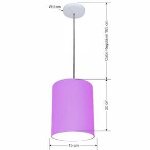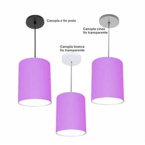 Luminária Pendente Vivare Free Lux Md-4103 Cúpula Em Tecido Lilás Da Canopla Canopla Branca E Fio Cristal