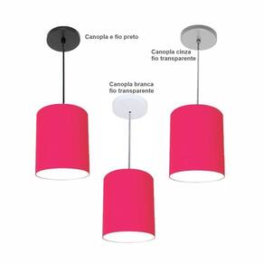 Luminária Pendente Vivare Free Lux Md-4103 Cúpula Em Tecido Cor Pink Cor Da Canopla Canopla Branca E Fio Cristal