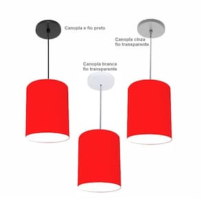 Luminária Pendente Vivare Free Lux Md-4103 Cúpula em Tecido - Cor: Vermelho | Cor da Canopla: Canopla cinza e fio cristal