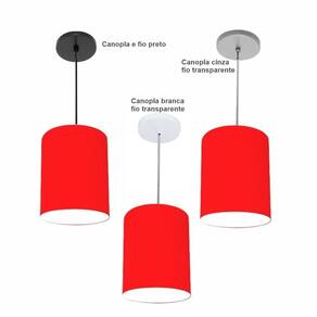 Luminária Pendente Vivare Free Lux Md-4103 Cúpula em Tecido - Cor: Vermelho | Cor da Canopla: Canopla preta e fio preto