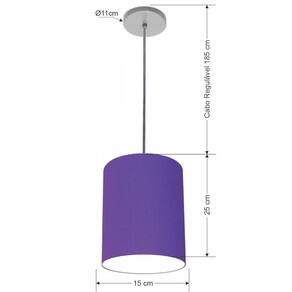 Luminária Pendente Vivare Free Lux Md-4104 Cúpula Em Tecido Cor Roxo Cor Da Canopla Canopla Cinza E Fio Cristal