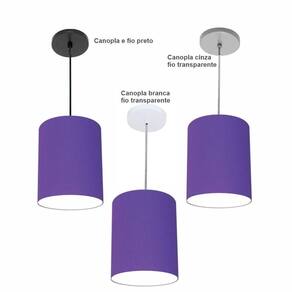 Luminária Pendente Vivare Free Lux Md-4104 Cúpula Em Tecido Roxo Da Canopla Canopla Preta E Fio Preto