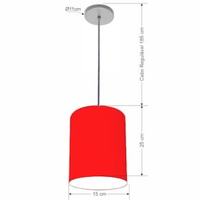 Luminária Pendente Vivare Free Lux Md-4104 Cúpula em Tecido - Cor: Vermelho | Cor da Canopla: Canopla cinza e fio cristal