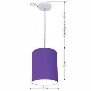 Luminária Pendente Vivare Free Lux Md-4104 Cúpula em Tecido - Cor: Roxo | Cor da Canopla: Canopla branca e fio cristal