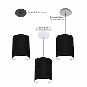 Luminária Pendente Vivare Free Lux Md-4104 Cúpula em Tecido - Cor: Preta | Cor da Canopla: Canopla cinza e fio cristal