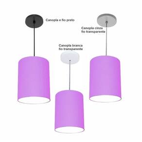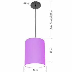 Luminária Pendente Vivare Free Lux Md-4104 Cúpula em Tecido - Cor: Lilás | Cor da Canopla: Canopla preta e fio preto