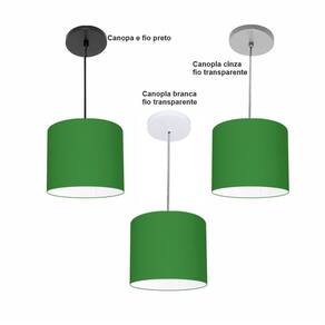 Luminária Pendente Vivare Free Lux Md-4105 Cúpula em Tecido - Cor: Verde-folha | Cor da Canopla: Canopla branca e fio cristal