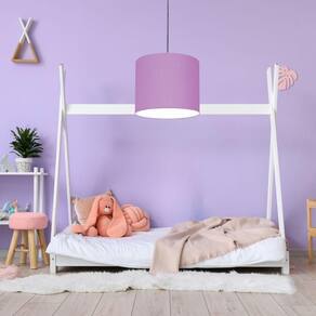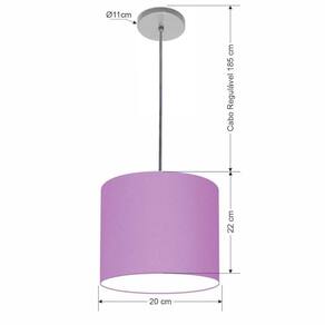 Luminária Pendente Vivare Free Lux Md-4105 Cúpula Em Tecido Lilás Da Canopla Canopla Cinza E Fio Cristal