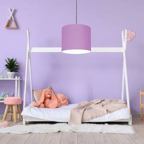 Luminária Pendente Vivare Free Lux Md-4105 Cúpula em Tecido - Cor: Lilás | Cor da Canopla: Canopla branca e fio cristal