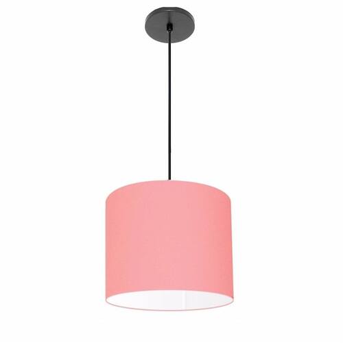 Luminária Pendente Vivare Free Lux Md-4106 Cúpula em Tecido - Cor: Rosa-tela | Cor da Canopla: Canopla preta e fio preto