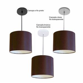 Luminária Pendente Vivare Free Lux Md-4106 Cúpula em Tecido - Cor: Café | Cor da Canopla: Canopla preta e fio preto