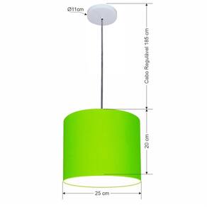 Luminária Pendente Vivare Free Lux Md-4107 Cúpula em Tecido - Cor: Verde-limão | Cor da Canopla: Canopla branca e fio cristal