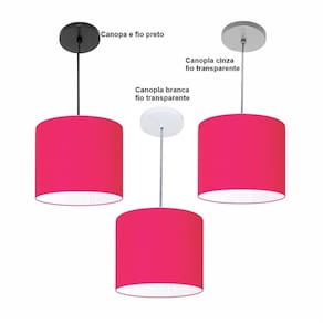 Luminária Pendente Vivare Free Lux Md-4107 Cúpula em Tecido - Cor: Pink | Cor da Canopla: Canopla branca e fio cristal