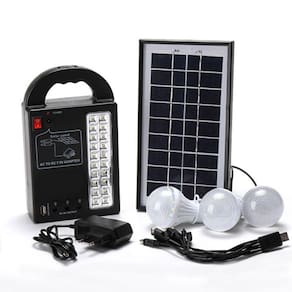 A energia solar fornece corrente contínua para iluminação e carregamento de dispositivos móveis. Além de ser útil em momentos de necessidade, o sistema solar também é útil para eventos ao ar livre e viagens noturnas. Ele também vem com um painel solar, uma unidade de controle eletrônico, lâmpadas LED e uma Placa solar. Utilizando energia solar renovável, este dispositivo de iluminação é obrigatório durante apagões e situações de emergência. Este dispositivo também é fácil de usar e fácil de montar. Também foi comprovado que não há ruído, permitindo que você aprecie as atividades ao ar livre ou a paz e tranquilidade da noite. Características do Produto Cor disponível: Preto Capacidade: 6000mAh Possui 20 Leds na parte frontal e Uma Lanterna Potência: 20w Entrada USB para carregar celulares ou outros equipamentos Material: Polipropileno e Componentes Eletrônicos. Produto 100% autêntico e de alta qualidade Possui indicador de nível de bateria Carregamento Adaptador de Tomada: Bi-Volt 110/220V - 50 / 60Hz Carregamento também por Placa Solar Entrada: DC 6V Saída: DC 9V Saída USB: 4x 5V = 0,5A Tempo de carregamento: 8-10 horas Tempo de Recarga no Sol: 12hs Tempo de trabalho: 8 à 12 horas Usando painel solar de 9V / 3.5w-7w entrada máxima inferior a 7w A Lâmpada Led É 90 Lumens, A Luz Lateral É 150 Lumens Quantidade de Leds Lâmpada Bulbo: 8 Potência Lâmpada Bulbo: 3W Dimensões Altura x Largura x Comprimento : Medidas Placa Solar: 2 cm x 15,5 cm x 27 cm Comprimento Cabo Placa Solar: 2 metros 90 cm Medidas Lâmpada Bulbo: 9cm x 6cm Comprimento Cabo da Lâmpada Bulbo: 3 metros 75 cm Medidas do Controle Principal: 13 cm x 5,5 cm x 23 cm Comprimento Cabo Fonte Controle Principal: 50 cm Conteúdo da embalagem 1x - Controle Principal, com entradas para Lâmpadas, Fontes, USB, Liga/Desliga. 3x - Lâmpadas Bulbo 1x - Placa Solar 1x - Cabo com USB com multi entradas para carregar dispositivos