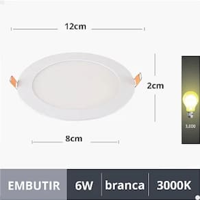 Benefícios do Produto Iluminação homogênea – evita sombras e garante um ambiente bem iluminado Baixo consumo de energia – tecnologia LED com alta eficiência energética Design moderno e discreto – embutido no teto, combina com qualquer decoração Material resistente e durável – estrutura em alumínio para maior dissipação de calor Fácil instalação – modelo embutir, ideal para tetos de gesso, forro ou drywall Bivolt automático – compatível com redes elétricas de 100V a 240V Especificações Técnicas Modelo: Embutir Redondo Potência: 6W Temperatura de Cor: 3000K (Branco Quente) Tensão: Bivolt (100V a 240V) Eficiência Energética: LED de alta durabilidade Grau de Proteção: IP20 (uso interno) Material: Policarbonato Instalação: Embutir Ambientes Indicados Ideal para iluminação de diferentes espaços: