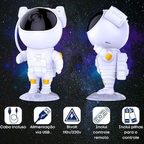 Luminaria Projetor De Luz Astronauta Galaxy Ligth Estrelas QUALIDADE SUPER REALISTA EFEITO GALÁXIA NEBULOSAOlá, amantes do espaço Prepare-se para embarcar em uma viagem cósmica com a Luminária de Astronauta com Projeção de Luzes ColoridasInovação Astronômica: A luminária que vai encantar as crianças e despertar a imaginação de todas as idades.Imagine só: uma noite estrelada dentro do seu quarto, com constelações brilhantes e planetas coloridos dançando no tetoAs crianças adoram ver suas luzes no teto, e com a Luminária de Astronauta, elas terão uma experiência mágica.Recursos Incríveis: A luminária conta com uma tecnologia avançada de projeção, que transforma qualquer ambiente em um planetário particularFácil de Usar: Basta ligar a Luminária de Astronauta, apontar para o teto e pronto Em um instante, você estará imerso em um espetáculo estelar. Sem esforço.Presenteie seus filhos com uma experiência que vai além da imaginação.ESPECIFICAÇÕES TÉCNICAS:Voltagem: Bi Volt 110v/220vPeso: 390 gramasFonte de alimentação: Via cabo USB Já incluso Tensão avaliado: 5V=1APotência nominal: 5wComprimento de onda de laser: 532nmModo de controle: Controle RemotoDistância do controle remoto: Marca: Shopbr