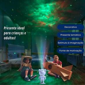 Luminaria Projetor De Luz Astronauta Galaxy Ligth Estrelas QUALIDADE SUPER REALISTA EFEITO GALÁXIA NEBULOSAOlá, amantes do espaço Prepare-se para embarcar em uma viagem cósmica com a Luminária de Astronauta com Projeção de Luzes ColoridasInovação Astronômica: A luminária que vai encantar as crianças e despertar a imaginação de todas as idades.Imagine só: uma noite estrelada dentro do seu quarto, com constelações brilhantes e planetas coloridos dançando no tetoAs crianças adoram ver suas luzes no teto, e com a Luminária de Astronauta, elas terão uma experiência mágica.Recursos Incríveis: A luminária conta com uma tecnologia avançada de projeção, que transforma qualquer ambiente em um planetário particularFácil de Usar: Basta ligar a Luminária de Astronauta, apontar para o teto e pronto Em um instante, você estará imerso em um espetáculo estelar. Sem esforço.Presenteie seus filhos com uma experiência que vai além da imaginação.ESPECIFICAÇÕES TÉCNICAS:Voltagem: Bi Volt 110v/220vPeso: 390 gramasFonte de alimentação: Via cabo USB Já incluso Tensão avaliado: 5V=1APotência nominal: 5wComprimento de onda de laser: 532nmModo de controle: Controle RemotoDistância do controle remoto: Marca: Shopbr
