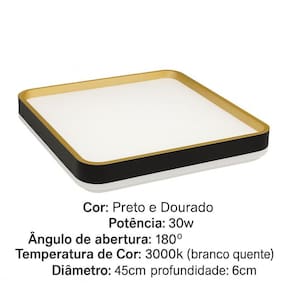 Luminária quadrada plafon design moderno bivolt preto 30w 6 meses de Lustre de teto led 30w - preto & dourado - design moderno e sofisticado Transforme seu ambiente com elegância e eficiência Este lustre de design contemporâneo une o contraste do preto sofisticado com o toque luxuoso do dourado, criando uma iluminação acolhedora e charmosa. - destaques do produto: Potência de 30w - iluminação ideal para salas, quartos, escritórios e áreas gourmet Temperatura de cor 3000k branco quente - aconchego e conforto visual Ângulo de abertura de 180 - iluminação uniforme e ampla Design moderno: 40cm de diâmetro x 6cm de profundidade Perfeito para quem busca estilo, sofisticação e economia Seja para destacar sua sala de estar, sala de jantar ou até mesmo ambientes comerciais, este lustre traz o equilíbrio perfeito entre funcionalidade e beleza. - um detalhe que faz toda a diferença na sua decoração O produto é novo Sim, todos os produtos são novos. Caso o produto não supra minha necessidade posso devolver ou trocar O produto tem Sim, todos os produtos têm . Se ainda houver alguma dúvida estamos a disposição para responder de segunda-feira a sexta-feira das 08:00 às 17:30.
