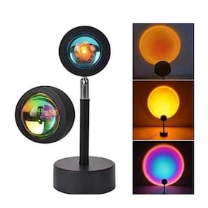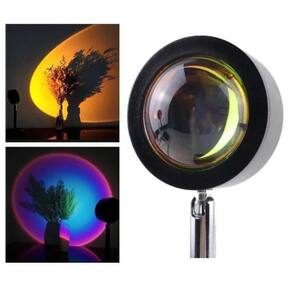 Luminária que projeta por do sol Características: 1. Pôr do sol sunset / pôr do sol vermelho sunset red / sol sun / lâmpada de projeção do arco-íris rainbow , experiência visual de sonho 2. Quanto maior a distância, maior a projeção, pode ser projetada na parede ou no teto 3. A luz emite uma luz circular colorida impressionante nas paredes, teto e chão 4. O ângulo do suporte da lâmpada pode ser ajustado e girado 360 graus 5. Fonte de alimentação 5v 5w usb, cabo com interruptor, cabo usb de 1 metro de comprimento.