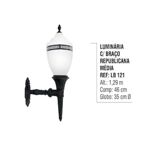 -01 Luminária Republicana Média Com Braço em Alumínio 1,29m