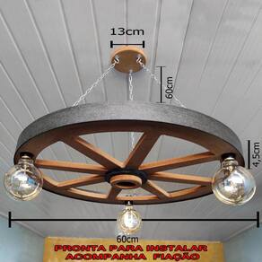 Luminária roda de carroça 3 bocal 60 cm 110/220 v kit 2 peça Bem vindo a eco.Mercadoshops Crie inove e encante A nossa linha de moveis não para de crescer e agora traz para você, esta linda peça para organizar diversos ambientes da casa. Esta peça com certeza vai deixar a sua casa mais bonita Luminária roda de carroça replica rustico, fabricado em mdf e pintado a mão. Envernizado deixando um acabamento envelhecido perfeito. Bom para iluminar e decorar ambientes como áreas de garagem, churrasco, garagens com bar, casa, chácara decorar festas, lanchonetes, casa de campo, pousadas. :::especificações técnica::: ::: acompanha fiação ::: ::: acompanha fiação ::: : características: - marca: eco - dimensões: - diâmetro 60 cm - peso do produto 3 kg - bocais 3 - kit sim - material: mdf medium density fiberboard - mdf ecologicamente correto com certificado fsc de alta qualidade - cor: mogno, tabalo - borda em mdf 3mm - nível de instalação: fácil - de 90 dias contra defeitos de fabricação :::conteúdo da embalagem::: - ganchos sim - soquetes sim - base para teto sim - corrente 60 cm - fios sim - lâmpadas não :::atenção::: Obs: fazemos em tamanhos personalizados também. Consulte-nos Todos os nossos produtos são feitos à mão e nos esforçamos para lhe entregar o mais rápido possível. :::sobre a compra::: O prazo começa a contar após a aprovação da compra. Será enviado código de rastreio logo após a postagem do produto. :::antes de comprar Tire todas as suas dúvidas no campo perguntas e respostas do vendedor. Os objetos decorativos não acompanham o produto Fique à vontade para nos fazer perguntas. Perguntas frequentes Os produtos são novos Sim todos os nossos produtos são novos. Os produtos têm Sim, todos os nossos produtos têm de fábrica. 3 meses Qual a voltagem A voltagem depende da lâmpada 100/220 v Acompanha as lampadas As lâmpadas não acompanha o produto Aguardamos sua um compra, é sempre prazer atendê-los Marca: Eco.Start