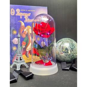 Luminária a rosa encantada vermelha 20 cm base pérola frio