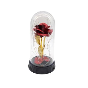 A Rosa Encantada é simplesmente charmosa e encantadora.A Rosa é Eterna, durará por centenas de anos artificial , eternize seu amor. Tenha todo o glamour do Ouro, a rosa é vermelha com dourado, vai protegida por uma cúpula de acrílico, envolta por luzes de fada, em base na cor preto. Excelente para presentear, decorar e encantar.É um presente luxuoso e marcante.Medidas:Altura da peça montada 19 cm total, diâmetro interno da cúpula 8,23 cm, diâmetro externo da cúpula 8,83 cm, diâmetro da base 10,2 cm, de altura da base pedestal 2,1 cm.Luzes de fada: Fio de led, com 2 metros de comprimento, no qual possui 20 micro luzes de led, que funcionam com 2 baterias CR 2032 já inclusas .Composição do pacote:1 Luminária Cúpula Redoma com luzes de fada da Rosa Vermelha inspirada no filme a Bela e A Fera e no O Pequeno Príncipe da Amor Lindo. Marca: Amor Lindo Boutique