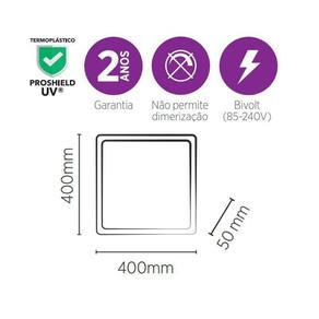 Temperatura de Cor: 3000K Quente Tipo do Produto: SOBREPOR Potência: 36W Fluxo Luminoso: 2300lm Ângulo: 120 IRC: =70 Dimerizável: NÃO Nivel de Proteção: IP40 Garantia: 2 ANOS Tamanho Produto: 400x400x50mm Peso Produto: 1,29kg Tensão: BIVOLT Cor: JET BLACK