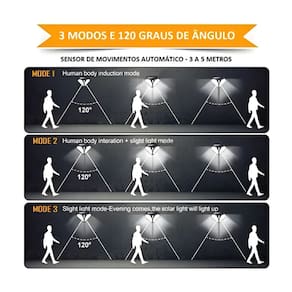 Quantas vezes você já se preocupou com áreas externas mal iluminadas, que podem colocar em risco a segurança do seu lar? Ou precisou de uma iluminação confiável em momentos críticos, mas teve que lidar com custos elevados de energia? Chegou a solução prática e econômica para manter seus ambientes sempre bem iluminados e seguros! Apresentamos a Luminária Solar com Sensor de Presença! Equipada com 100 LEDs de alta eficiência, essa luminária é alimentada por energia solar, garantindo iluminação potente de até 20W sem custo adicional na conta de luz. Seja instalada na parede ou no chão, ela detecta movimentos em até 4 metros, acionando uma luz branca intensa e clara, perfeita para áreas externas como jardins, varandas, entradas e garagens. Com proteção IP65 e vida útil de até 50 mil horas, ela resiste a condições climáticas adversas, oferecendo segurança e praticidade de forma contínua e automática. Características do produto: - 100 LEDs para iluminação potente (20W). - Material: ABS durável e resistente. - Sensor de iluminação: 0,55W. - Fonte de energia: Energia solar. - Bateria: 3.7V/2.5W com vida útil de 50 mil horas. - Nível de proteção: IP65 (resistente à água e poeira). - Sensor de movimento: Detecta até 4 metros com ângulo de 120 graus. - Cor dos LEDs: Branco. - Instalação versátil: Pode ser fixada na parede ou no chão. - Interruptor: Botão ON/OFF. - Dimensões: 10x13,5x15 cm (altura, largura, diâmetro). Itens Inclusos: - 1x Luminária Solar 100 Leds. - 1x Manual de Instruções; Marca: Aquilae