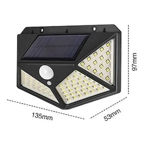 Luminária Solar 4 Placas 100 Leds Operação de Parede Super Luminária Solar 4 Placas de 100 Leds com 3 Modos de Operação de Parede Modos de Operação: Modo 1: Fica apagada e acende 100% do brilho com sensor de movimento por 15-30 segundos e depois apaga; Modo 2: Fica sempre acessa 50% do brilho e com sensor de movimento acende 100% do brilho por 15-30 segundos e depois volta nos 50%; Modo 3: Assim que escurece, a luminária acende 50% do brilho o tempo todo até amanhecer. OBS: Os 3 modos funcionam somente no escuro. Características do produto: LED: 100SMD2835 0.2W/PCS Material do corpo da luz: PC+ABS Especificações do painel solar: silicone monocristalino 5.5V 1.43W Especificação da bateria: 18650 bateria de lítio 3.7 V 2200MAH com proteção de carga e descarga Resistencia: IP65 Potência de saída: 3.2V/7W Tempo de carregamento: 6 horas no sol Ângulo de detecção PIR: 120 graus Tamanho: 13cm x 9,5cm x 5,5cm Vantagens: Ajuste frontal é mais fácil de operar, economia de energia e proteção ambiental, longa vida, durabilidade, baixa reparação de falhas taxa, alta estabilidade de radiação, instalação simples só precisa de 2 Parafusos podem ser fixados na parede exterior que pode ser iluminada pelo sol . É fácil de usar, controle inteligente de detecção de luz, sem ajuste, economia de energia, tornando sua casa mais bonita e inteligente. Recomendações: É adequado para ambientes ao ar livre, portões de jardim, terraços, parede externas, vitrines, lojas, casas e outros ambientes ao ar livre, sem fiação, sem eletricidade, requintado. de 90 dias contra defeito de fabricação. Observações: As cores podem variar entre as imagens mostradas acima e o produto. Imagens meramente ilustrativas. Atenção: Todas as informações divulgadas são de responsabilidade exclusiva do fabricante. Marca: Não Informado