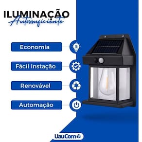 Leve para casa a Luminária Solar Tipo Arandela Solar Tungstênio Bulbo Parede e desfrute de iluminação confiável, sustentável e de alta qualidade. Transforme seus espaços externos com essa solução prática e moderna que cuida do seu bolso e do meio ambiente. Aproveite ao máximo a energia do sol!