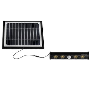 Especificações técnicas Modelo LSM 950 Painel Solar 4,5W, silício monocristalino Bateria 3,7V, 4000 mAh, lítio recarregável Quantidade de LEDs 64 Potência máxima 8W Fluxo luminoso máximo 950 lm Temperatura de cor Branca 6000K Ângulo de abertura 140x70°, tipo III Eficiência luminosa 118,7 lm/W Tempo de recarga 8 horas de luz solar Autonomia Até 2 noites Grau de proteção IP65 Sensor de presença Ângulo de 120°, detecta movimentos em até 10 metros de distância Altura de instalação Até 4 metros de altura Distância entre luminárias Entre 6 e 8 metros Dimensões do produto (L x A x P) 214 × 267,9 × 7,9 mm Temperatura de funcionamento -10° C a 50° C Instalação em Poste reto e parede