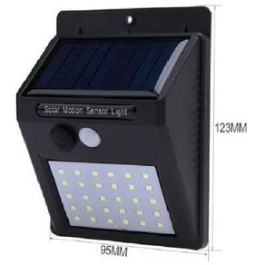 Luminária Solar Parede Led Com sensor Solar e ideal para áreas externas, a Luminária Luz Led Solar agrega beleza e praticidade ao exterior da Residencia, Escritório e outros... Tem uma Iluminação constante amena, funcionando como luminária, e aciona uma alta luminosidade, deixando o ambiente iluminado e seguro. movido A Energia Solar 30 LEDS Jardim Ao Ar Livre Quintal Parede Lâmpada Luz Sensor De Movimento À Prova D' Água Características do produto. Sem fios e fácil de instalação, somente fixar na parede Solar lâmpada de parede. Diodo emissor de luz faixa de detecção do sensor com 5 metros e 120 graus de ângulo de detecção; IP65 À Prova D' Água, resistente ao calor, luz solar pode se adaptar a maioria das condições meteorológicas; Fornece luz para o seu jardim, pátio, do corredor, varanda, pátio ou na calçada. Especificações: Painel Solar: 0.55 w, 17% eficiênciaBateria recarregável: 3.7 V 800 mAhQuantidade de LED: 30 LEDsPotência: 0.2 W/LEDMaterial: ABS + PCClasse da proteção: IP65Tempo de carregamento: 6 ~ 8 hTamanho da luminária: 9,5 x 12,3Itens inclusos: - 01 Luminária Solar - 02 Parafusos e bucha Imagens Ilustrativas