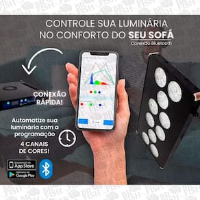 Luminária Solara plus Ocean tech bivolt Tamanho aprox: 25x45x3cm Para aquários até 100cm A luminária solara plus é de para aquários marinhos com corais de máxima exigência ou coluna de água alta. Com cobertura de área máxima de 100cm é ideal para todas espécies de corais e até mesmo os mais exigentes. 4 canais de cores ajustáveis via app/bluetooth Potência 180w / 8080 lúmens / bivolt Peso: 6kg Área de cobertura aprox: 100 cm Com 60 power led's de 3w sendo: 12 x deep blue 450nm 12 x cool white 10000k 12 x light blue 470nm 8 x violet 420nm 4 x uv 395nm 4 x green 520nm 4 x cyan 500nm 4 x red 660nm Marca: Não Informado Ean: 7893199399474