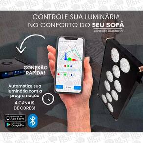 Luminária Solara plus Ocean tech bivolt Tamanho aprox: 25x45x3cm Para aquários até 100cm A luminária solara plus é de para aquários marinhos com corais de máxima exigência ou coluna de água alta. Com cobertura de área máxima de 100cm é ideal para todas espécies de corais e até mesmo os mais exigentes. 4 canais de cores ajustáveis via app/bluetooth Potência 180w / 8080 lúmens / bivolt Peso: 6kg Área de cobertura aprox: 100 cm Com 60 power led's de 3w sendo: 12 x deep blue 450nm 12 x cool white 10000k 12 x light blue 470nm 8 x violet 420nm 4 x uv 395nm 4 x green 520nm 4 x cyan 500nm 4 x red 660nm