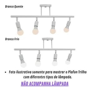 Luminária plafon 4 e27 trilho branco fosco --------------------------------------------------------------------------------------------------------------- Descrição do produto: Modelo: plafon trilho articulável 4 e27 Material: alumínio Cor do acabamento: branco fosco Tensão de rede: bivolt 127v / 220v Ambiente: interno/externo Garantia: 6 meses contra defeitos de fabricação
