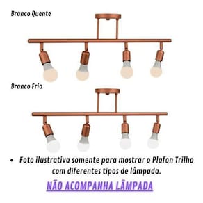 Luminária plafon 4 e27 trilho cobre fosco --------------------------------------------------------------------------------------------------------------- Descrição do produto: Modelo: plafon trilho articulável 4 e27 Material: alumínio Cor do acabamento: cobre fosco Tensão de rede: bivolt 127v / 220v Ambiente: interno/externo Garantia: 6 meses contra defeitos de fabricação