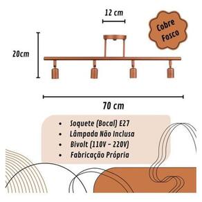 Luminária plafon 4 e27 trilho cobre fosco --------------------------------------------------------------------------------------------------------------- Descrição do produto: Modelo: plafon trilho articulável 4 e27 Material: alumínio Cor do acabamento: cobre fosco Tensão de rede: bivolt 127v / 220v Ambiente: interno/externo : 6 meses contra defeitos de fabricação Dicas importantes Produto com disponível. Confira o produto desejado antes de finalizar a compra. Tire todas as suas dúvidas com o vendedor. Mantenhas seus dados atualizados, após a compra as informações não poderão ser mudadas. Antes de abrir uma reclamação consulte o vendedor, temos o prazer em entender para atender. Aguardamos sua avaliação positiva : Contra defeitos de fabricação. Envio Loja de fábrica Marca: Não Informado