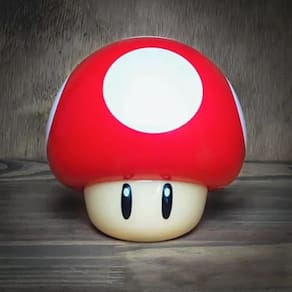 A Luminária Cogumelo era o que faltava na sua decoração geek. A Luminária Cogumelo, além de criar uma iluminação leve perfeita para você dormir, ainda emite som cada vez que liga e desliga. Uma ótima ideia de Presente Diferente e Criativo para os gamers fãs de Mário Bros.