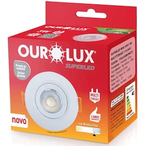 Luminária Superled Mini Spot Redondo Branco 3 Watts 4000k - 05610a - Ourolux Luminária Superled Mini Spot Redondo Branco 3 Watts 4000K - 05610A - OUROLUX Descrição: Luminárias em policarbonato, possuem um design moderno e elegante criando situações ideais de aplicação. Pronto para instalação com driver interno, garante a substituição imediata das lâmpadas dicróicas, além do baixo consumo de energia e alta durabilidade. Tem um ótimo custo x benefício e tornam seus ambientes muito mais aconchegantes.