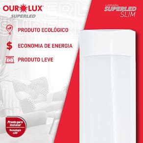 Luminária Superled Slim 30cm 9 Watts 3000k Bivolt - 5898b - Ourolux Luminaria Led Slim 30cm 9w 3000k Bivolt Luminária Superled SLIM 30CM 9 Watts 3000K BIVOLT - 5898B - OUROLUX Descrição: Praticidade e alto padrão de qualidade. As Luminárias SUPERLED SLIM OUROLUX são soluções integradas com tecnologia LED. Design moderno com espessura Slim, para aplicações em teto ou em móveis. Já vem com driver incorporado no produto para fácil instalação. Um produto inovador que compõe e valoriza o ambiente através da iluminação.