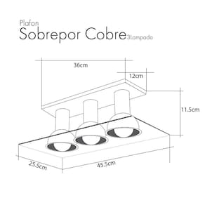 Luminária de teto plafon de sobrepor cobre para 03 lâmpadas e27 vidro bivolt Cores: cobre Voltagens: 110v/220v Luminária de teto plafon de sobrepor cobre para 03 lâmpadas e27 vidro bivolt O plafon multhi é uma peça clean, que possui um design moderno e traz ao ambiente leveza e sofisticação. A luz da lâmpada é 100% aproveitada, isso devido ao seu design moderno que permite que o bulbo da lâmpada não tenha nenhum tipo de bloqueio. Surpreenda-se com essa peça Medidas do produto podem variar 5% para mais ou para menos de acordo com o lote do produto Informações técnicas Cor Canopla e suporte do soquete cobre - vidro transparente com borda preta Dimensões do produto 45,5cm de comprimento -21,5cm de largura - 13,5cm de altura Altura ajustável Não Tipo de soquete E27 Quantidade de lâmpadas necessárias 03 Lâmpadas apropriadas Led não utilizar lâmpadas halógenas ou incandescentes Potência máxima por lâmpada 20w Acompanha lâmpada Não Possui led integrado Não Material Canopla e corpo em alumínio - vidro temperado Necessita montagem Não Uso Teto Tensão Bivolt Produto garantido por 90 dias após emissão da nota ou cupom fiscal ao consumidor Marca: Não Informado