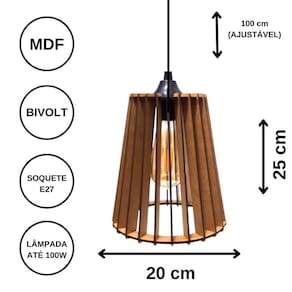 Luminária Teto Tipo Pendente Cairo Mdf - Completa Cor: Preta