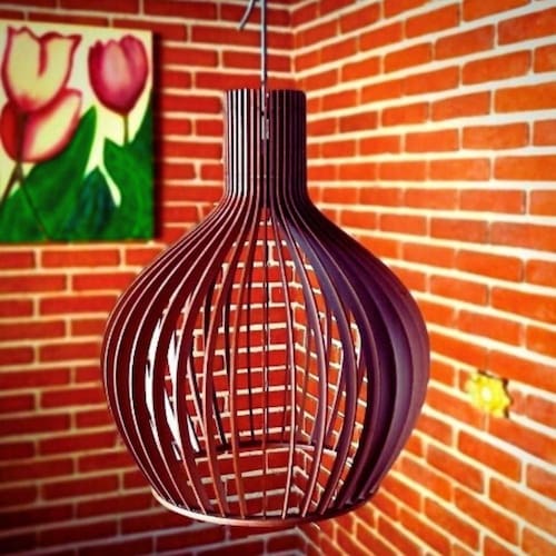 Luminária Teto Tipo Pendente Em Mdf Vegas Completa - Marrom