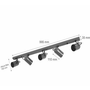 Trilho Spot Focus Fit - Trilho de 96,5 cm com 5 spots direcionáveis