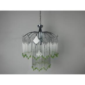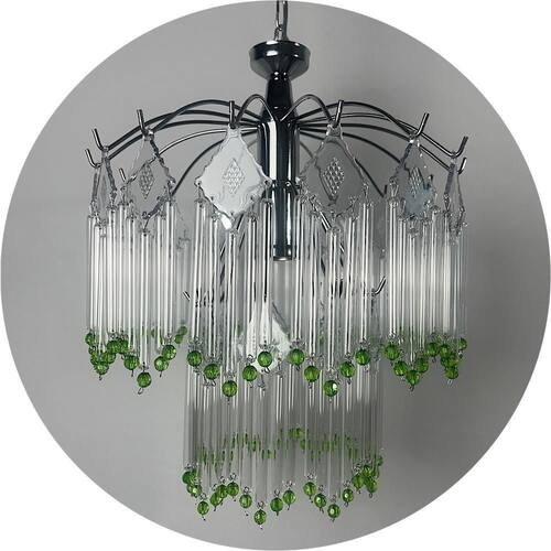 Descrição do Produto Lustre de Vidro com Cristais Acrílicos - Base Cromada com 2 Andares