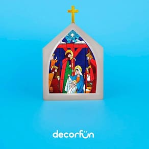Adicione a Luminária Vitral Capela de Natal em seu altar para agregar a decoração e complementar sua devoção em seu momento de oração.