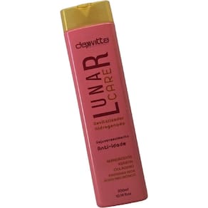 A linha lunar care dexvitta anti-idade fol desenvolvido com exclusiva formulatção para todos os tipos de cabelos para deixa-los mais jovens. As propriedades dos aminoácidos fortalecem as fibras capilares, dando mais juventude aos fios de seus cabelos, que no decorrer do tempo, também ficam mais velho, decorrente da idade e de todos os processos quimicos da sua vida. Lunar care deixa-os mais jovem, mals hidratado e, com muito mais vida. Modo de uso: Aplique o revitalizador hidrogenado lunar care, passar por toda extensão do fio enluvando cuidadosamente mecha par mecha. Deixe agir por 3 minutos e enxágue em abundancia. Finalize com o serum da lunar care. Marca: Não Informado