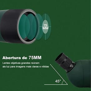 Zoom Ajustável de 25x a 75x: Obtenha imagens de alta definição com um impressionante alcance de zoom para capturar cada detalhe. Tripé de Base Ajustável Incluído: Oferece estabilidade e suporte, com ajustes fáceis para maior conforto. Prisma BAK4 e Revestimento FMC: Proporcionam imagens mais brilhantes, nítidas e com alto contraste, mesmo em ambientes de pouca luz. Impermeável e Antifog: Construção resistente a água e névoa, ideal para aventuras em qualquer clima. Vedação com Nitrogênio: Garante durabilidade e evita embaçamento interno. Suporte para Smartphone: Capture fotos e vídeos diretamente através da luneta, compartilhando momentos inesquecíveis com facilidade. Portabilidade: Compacta, leve e acompanha bolsa de transporte para maior praticidade.