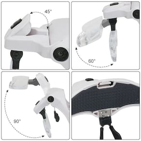 Lupa Cabeça Profissional Aumento Leitura Estética Eletrônica Artesanato Robótica A Lupa de Cabeça Profissional amplia objetos ou superfícies em até 3.5x. Possui apoio de nariz, ângulo das lentes e do LED ajustável para se adaptar à necessidade de cada um. Com 2 lâmpadas para auxiliar na observação de pequenos detalhes. Perfeito para leitura, costura, relojoarias, pintura, robótica, reparo de placas de computador e outras atividades que necessitam cuidados com detalhes. Acompanha 5 lentes de aumento que vai de 1.0x até 3.5x de zoom, e uma faixa elástica ajustável para cabeça. Lentes: 555mm (1.0X) 381mm (1.5X) 278mm (2.0X) 183mm (2.5X) 156mm (3.5X) Especificações Técnicas: Modelo: Lupa Cabeça Profissional Com LED 5 Lentes Material: Plástico de Alta Qualidade, Acrílico, Componentes Eletrônicos. Cor da Armação: Branco com Detalhes em Preto Alimentação de Energia: 3 Pilhas AAA (Não Incluso) Dimensões Aprox.: 6,5cm (Altura) X 20cm (Comprimento) X 14,5cm (Largura) Peso Aprox.: 70g Itens Inclusos na Embalagem: - 01x Armação Tipo de Óculos - 01x Faixa Elástica para Cabeça - 01x Caixa Organizadora das Lentes - 05x Lentes Acrílicas de Aumento - 01x Manual (Inglês)